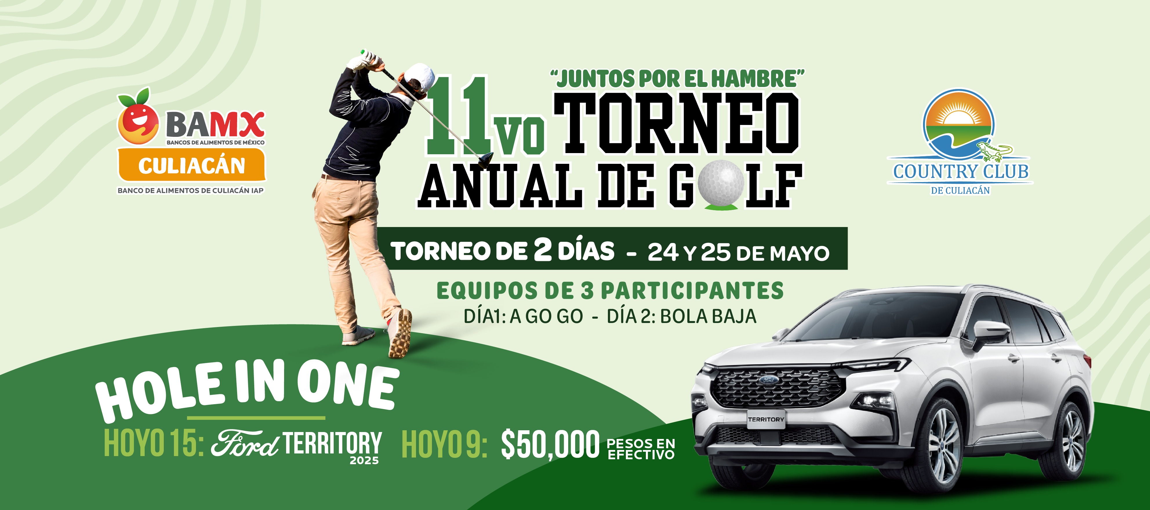 ¡No te quedes fuera! Inscríbete ya y asegura tu lugar en el 11vo Torneo Anual de Golf en beneficio del Banco de Alimentos de Culiacán. El cupo es limitado, ¡no pierdas la oportunidad de vivir dos días llenos de golf, grandes premios y solidaridad!